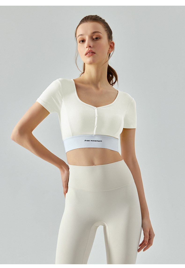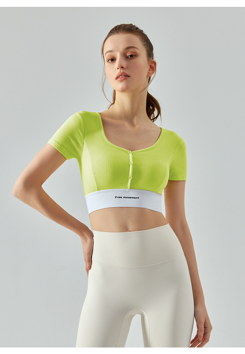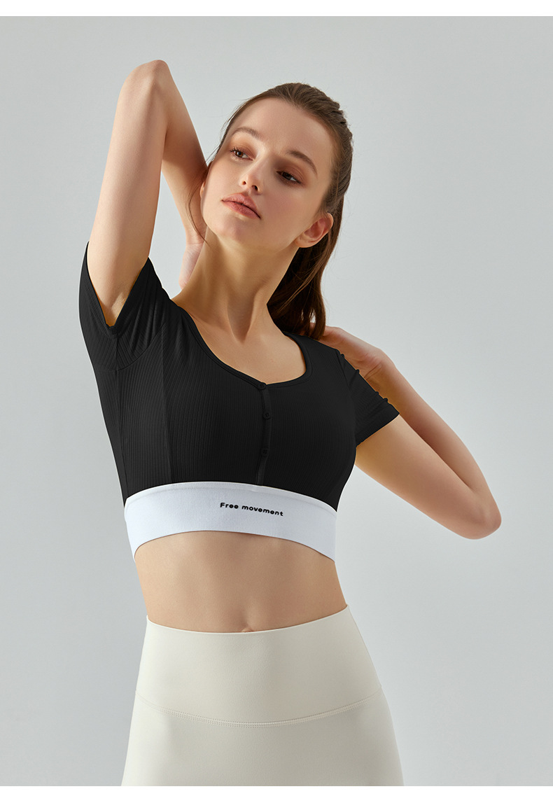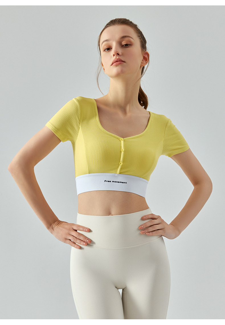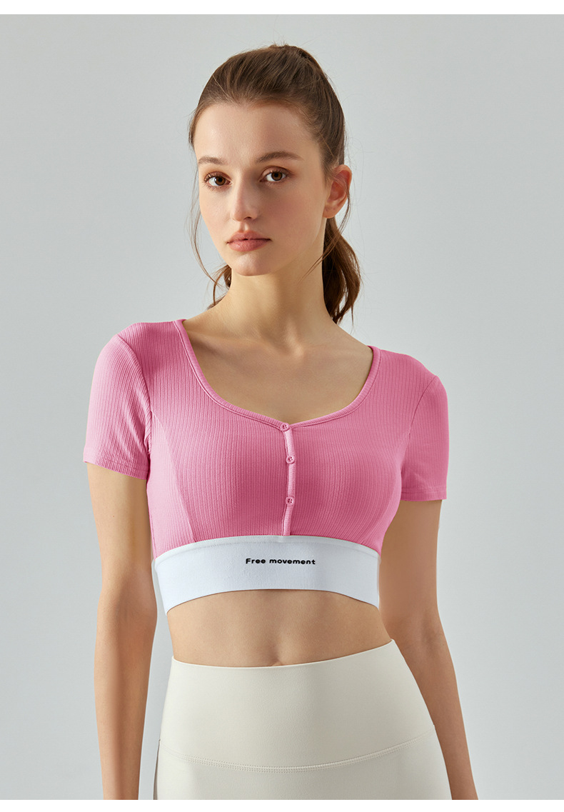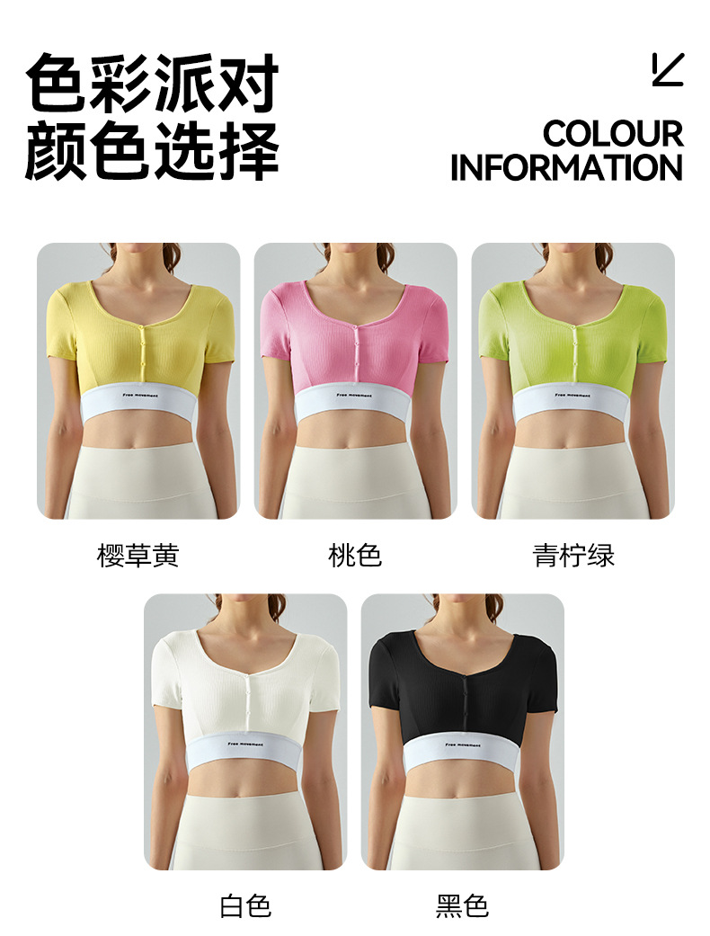 运动上衣带胸垫修身瑜伽服短袖外穿户外健身辣妹上衣女春