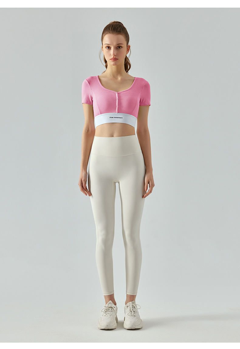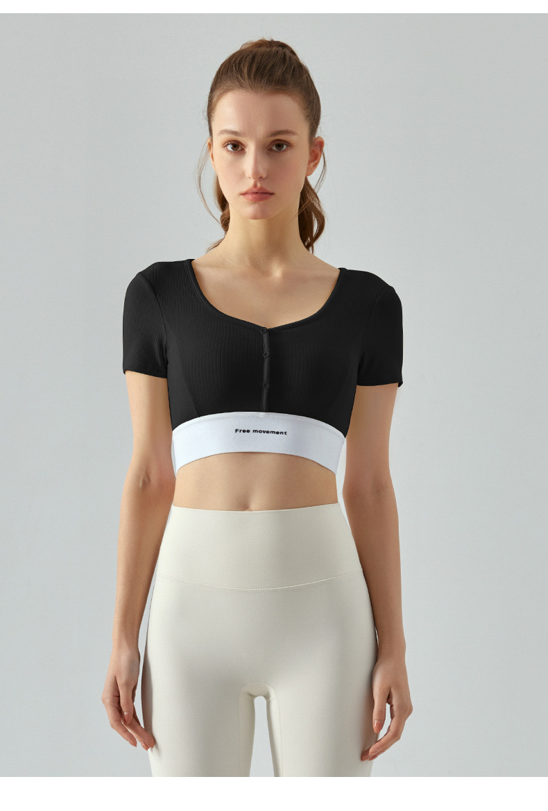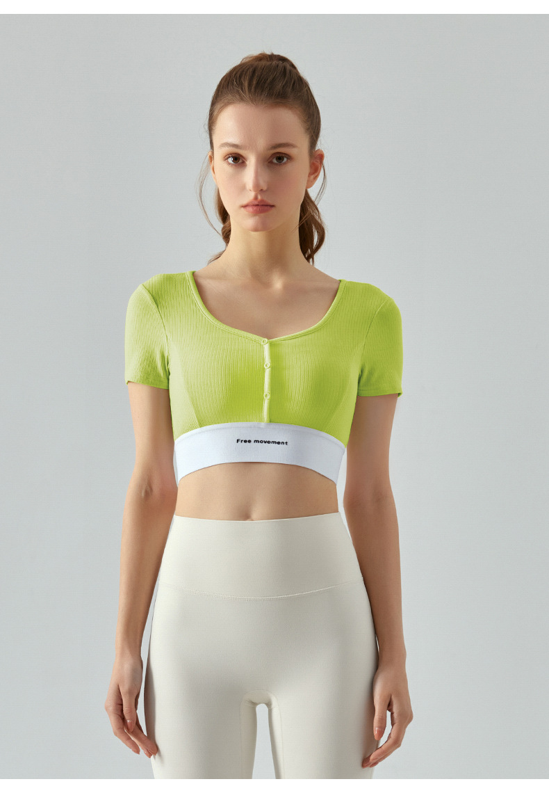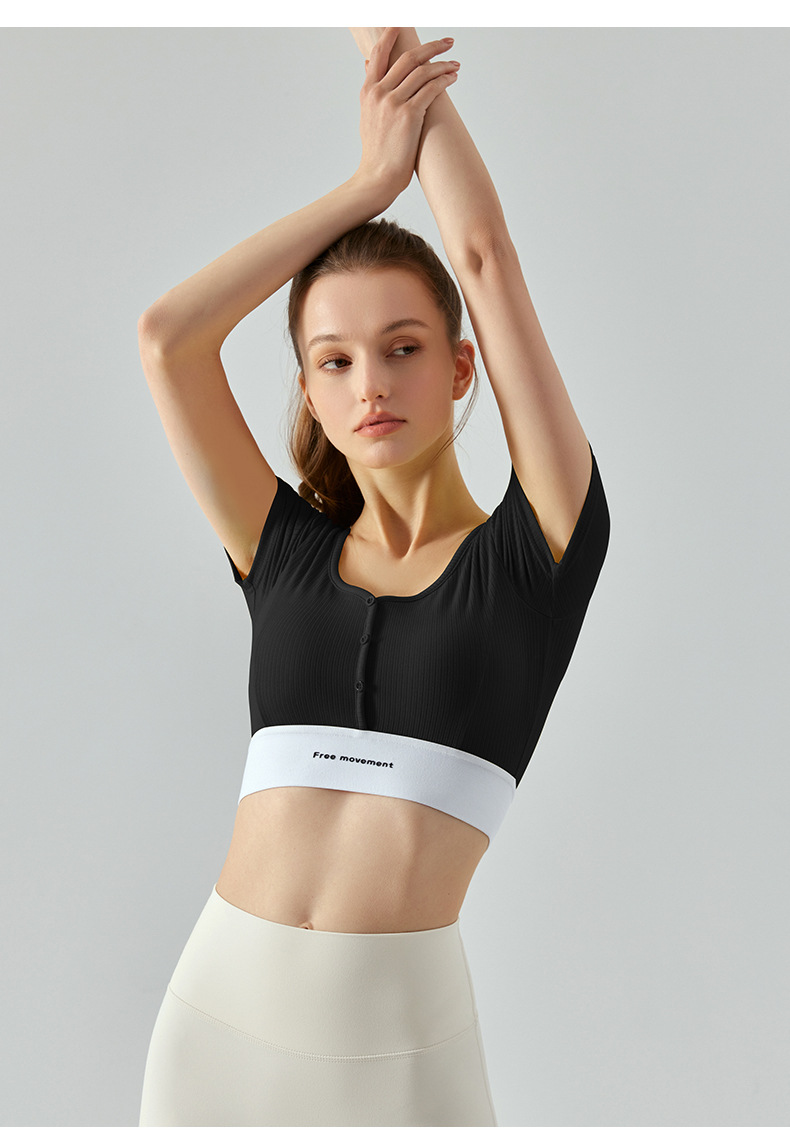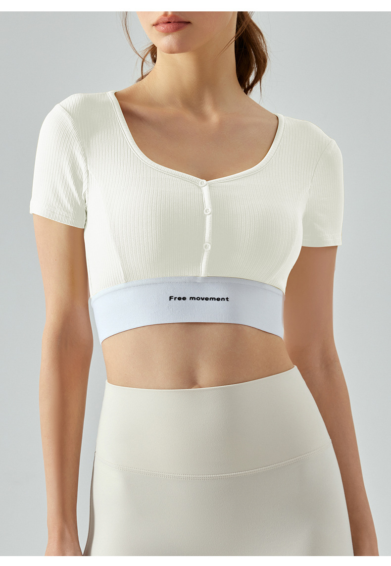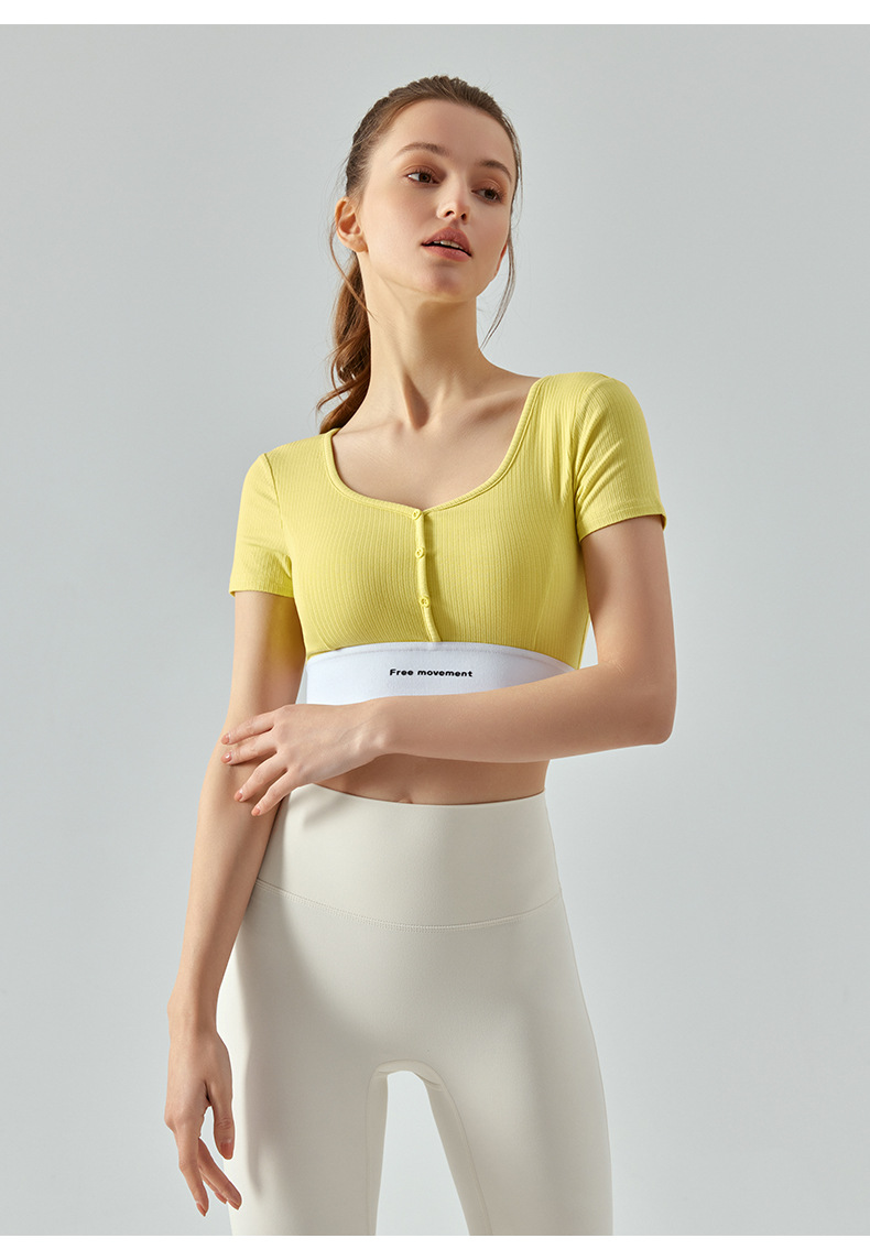 运动上衣带胸垫修身瑜伽服短袖外穿户外健身辣妹上衣女春