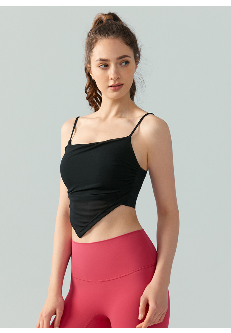 纯欲风设计感上衣女性感网纱吊带瑜伽背心带胸垫时尚外穿抹胸内衣